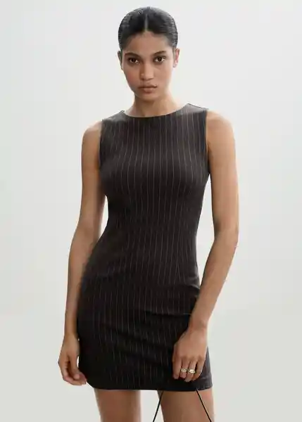 Cuello Redondo, Diseño Corto, Diseño de Rayas, Diseño Entallado, la Modelo Mide 178 cm y Lleva Una S, Sin Mangas - 77064031_92.