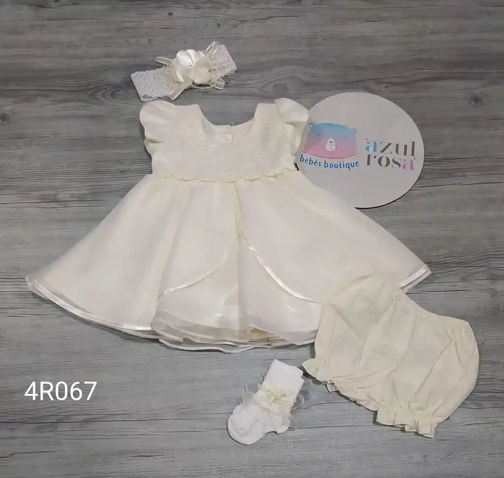 Vestido Elegante en Chiffon con falda en tres capas de tela, corpiño bordado. Trae bombacho, medias y balaca es ideal apara ocasiones especiales