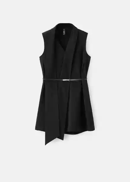 Adorno de Fular en el Cuello Bajo Asimétrico Cuello Pico Detalle Cinturón en la Cintura Diseño Corto Diseño Recto Forro Interior Sin Mangas Tirante Ancho - 27005838_99.