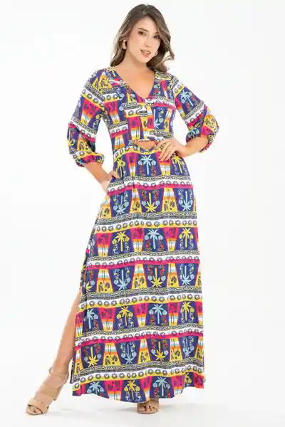 En Chalis Estampado Escote en V Manga 3/4 Con Elástico Bolsillos Laterales Aberturas Decorativas en Cintura Frente Aberturas en Falda.
