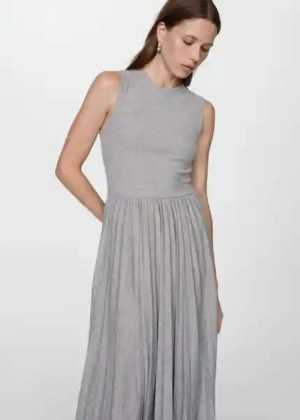 Cuello Redondo, Diseño Largo, Diseño Plisado, Sin Mangas, Tejido Fluido - 77095977_94.
