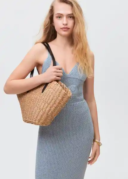 100% Algodón Abertura Lateral en el Bajo Diseño Largo Diseño Recto Escote de Pico Forro Interior Tejido de Crochet Tirantes Finos - 87056340_50.