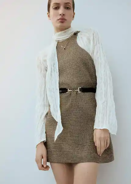 Cierre de Cremallera en la Parte Posterior Cuello Redondo Detalle de Botón en el Tirante Diseño Corto Diseño Recto Exclusivo Online Forro Interior Sin Mangas Tejido Mezcla de Lana Tejido Pata de Gallo - 27081318_09.