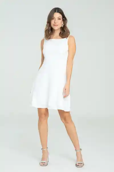 En Twill Con Piedras Escote Redondo Ajusta en Cintura Falda Línea a Con Bolsillos Forrado.