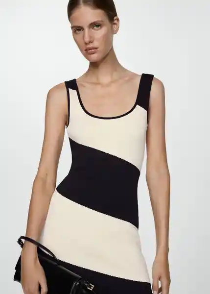 Diseño Entallado, Diseño Midi, Escote Redondo, Estampado de Rayas, Tejido de Punto Fino, Tirantes Anchos - 77074061_99.