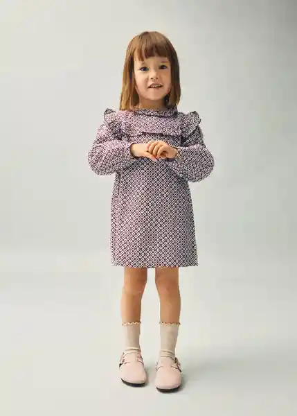 Cierre de Botones en la Parte Posterior Cuello Redondo Volante Diseño Evasé Manga Larga Tejido 100% Algodón Volantes en Los Hombros - 17076341_76.