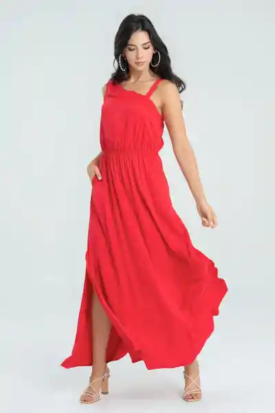 Asimétrico en Chalis Fondo Entero Drapeado en un Hombro Manga Sisa y Tira en el Otro Elástico en Cintura Aberturas Laterales.
