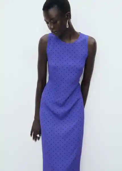 Cierre de Botón en el Cuello Cuello Redondo Detalle de Abertura en la Parte Posterior Diseño Midi Diseño Recto Disponible Plus el Color Azul es Exclusivo Online Estampado de Lunares Lazo Ajustable en la Espalda Sin Mangas Tirantes Anchos - 17092928_52.