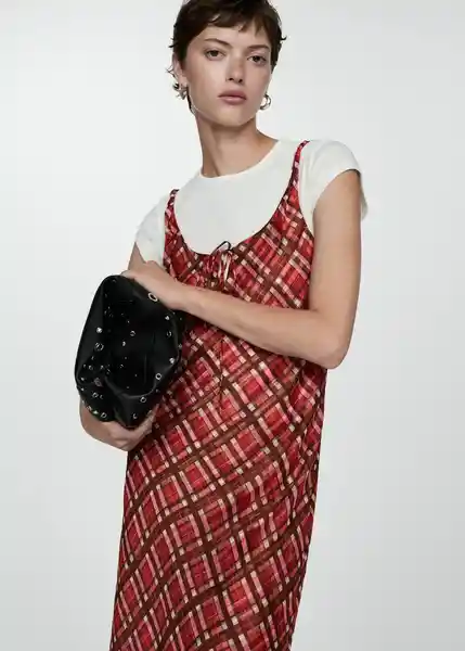 Diseño Largo, Diseño Recto, Escote Redondo, Estampado de Cuadros, Forro Interior, la Modelo Mide 177 cm y Lleva Una Talla S, Lazo Decorativo, Sin Cierre, Sin Mangas, Tejido Fluido, Tirantes Finos - 77014038_76.
