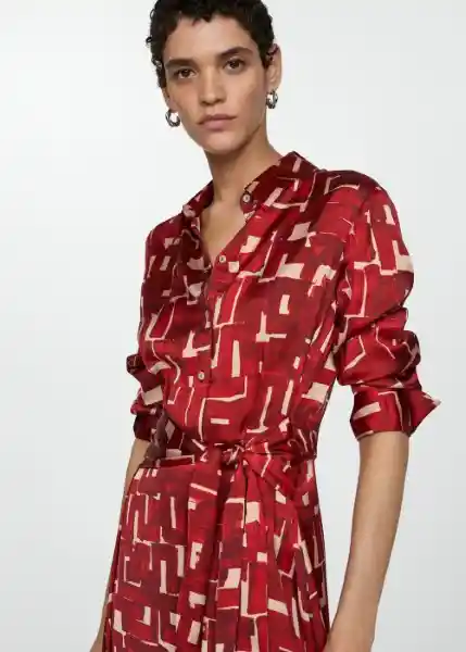 Cierre de Lazo Ajustable, Cierre Delantero Con Botones, Cuello Camisero, Diseño Estampado, Diseño Evasé, Diseño Largo, Manga Larga Con Coderas Pespunteadas, Tejido Fluido - 77015673_76.