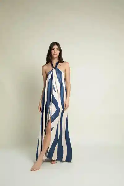 Vestido Halter Largo Rayas Talla L