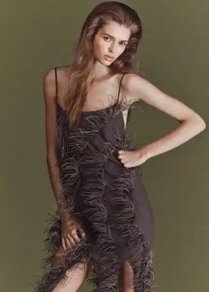 Adorno de Plumas Cosidas a Mano Bajo Acabado Con Flecos Cierre de Cremallera en la Parte Posterior Cuello Escotado Diseño Entallado Diseño Largo Esta Prenda Pertenece a Nuestra Colección de Fiesta y Evento Diseñada Para Elevar Tus Looks en Ocasiones Especiales Este Diseño Abraza la Silueta Con Naturalidad Mientras Que su Diseño se ve Elevado Por Una Elegante Decoración de Plumas Dispuestas de Manera Dinámica Por Toda la Prenda. El Diseño Incorpora Sensuales Aberturas y Detalles de Flecos Que Fluyen en Perfecta Armonía Con Las Plumas Logrando Una Declaración de Sofisticación y Carácter Forro Interior Los Artículos de la Colección Capsule se Pueden Cambiar o Devolver en un Plazo de 14 Días Desde la Fecha de Envío Tirantes Finos - 27081186_35.
