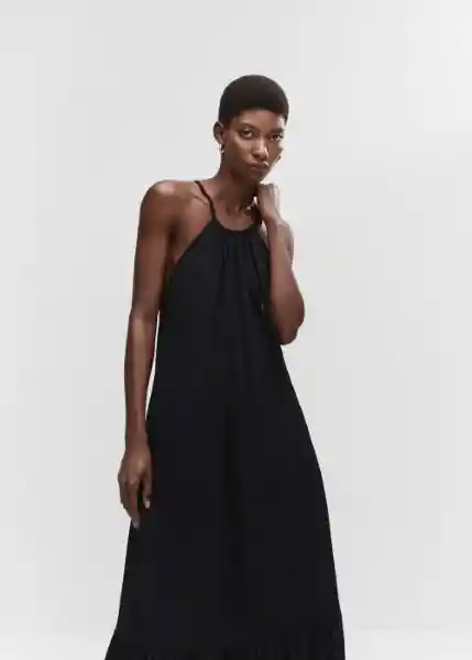 Bajo Con Vuelo Colección Fiesta y Ceremonia Cuello Halter Diseño Evasé Diseño Largo Diseño Maxi Espalda Abierta Sin Mangas Tejido Fluido Tirantes Cruzados en la Espalda Tirantes Finos - 57052893_99.