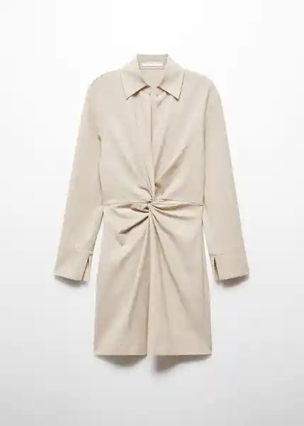 Cuello Camisero Pico Detalle Nudo Diseño Corto Diseño Recto Manga Larga Con Aberturas en Los Puños Tejido Mezcla de Algodón y Lino - 67055742_07.