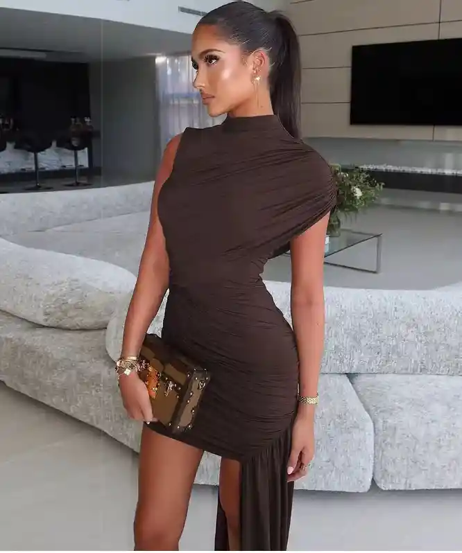 Vestido Kaelis Atrevido, estructurado y absolutamente sofisticado. El Vestido Kaelis combina la elegancia del cuello alto con un diseño asimétrico que envuelve la figura y resalta cada curva de forma impecable. Su tejido fruncido crea un efecto moldeador que define la cintura, mientras su corte mini con caída lateral agrega ese toque de movimiento y sensualidad que roba miradas. Confeccionado en un material elástico de textura suave, ofrece comodidad sin perder estructura ni glamour. Ideal para noches donde quieres destacar con fuerza y estilo. ✨ Detalles que amarás: Cuello alto y silueta asimétrica Frunces estratégicos que estilizan el cuerpo Corte mini con caída lateral elegante Tejido elástico y suave al tacto 💫 Ideal para: cenas, cocteles o eventos nocturnos donde el estilo habla por sí solo.