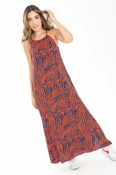 En Chalis Estampado Escote Halter Con Amarre en Espalda Bolsillos Laterales Silueta Amplia Aberturas en Costados.