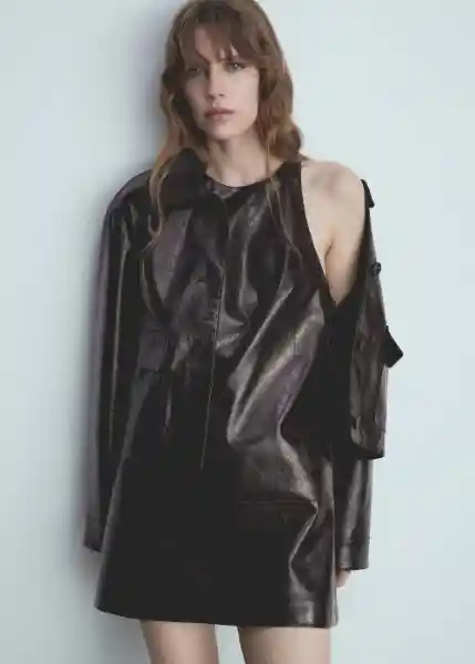 Cierre de Cremallera Invisible en la Parte Posterior, Cuello Redondo, Diseño Corto, Diseño Recto, Efecto Piel, Forro Interior, la Modelo Mide 178 cm y Lleva Una S, Sin Mangas, Total Look - 77076722_77.