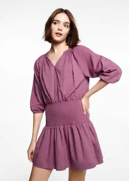 Cuello Fruncido Diseño Corto Fruncido Elástico en la Cintura Manga Tres Cuartos Sin Cierre Tejido de Algodón - 67096008_62.