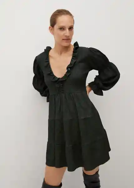 Cuello Pico Diseño Acampanado Diseño Estampado Manga Larga Abullonada Puños Elásticos Tejido Fluido Volantes Decorativos - 77084427_37