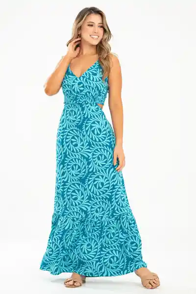 Estampado Peto Tanto en Delantero Como en Trasero Pieza Enresortada en Nido de Abeja Debajo Del Busto Pieza Enresortada en Elástico de 1 cm en Pretina Bolsillos en Los Laterales de la Falda Abertura en Espalda Bolero en Ruedo.