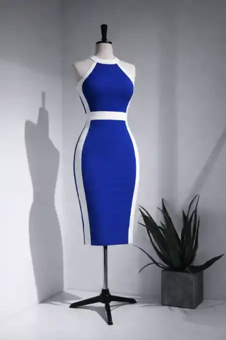 Vestido estilo casual color azul con blando ideal para reuniones o oficina!