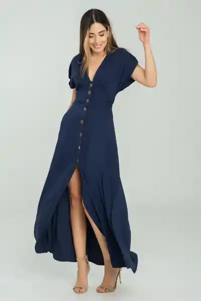 Largo en Tejido Plano Fondo Entero Escote en V en la Parte Delantera Botonado en Centro Frente Hasta Arriba de la Rodilla en Cintura Con Tiras Dobles Que Anudan en Los Costados Bolsillos en Los Laterales de la Falda Ruedos de 0.8 mm.
