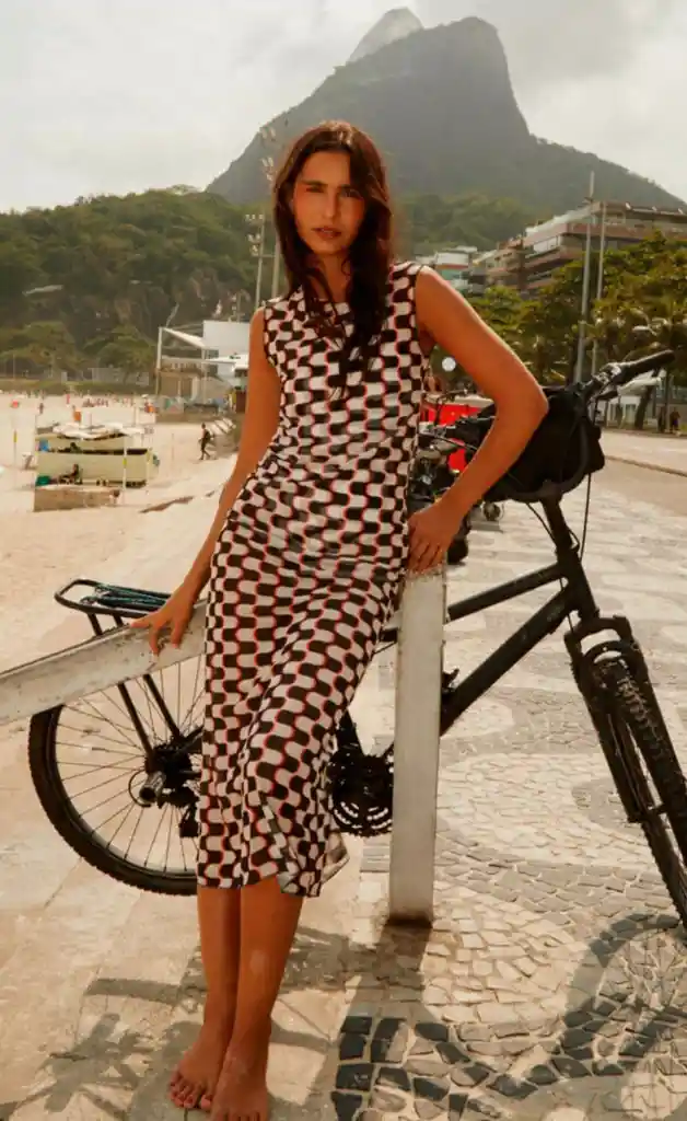 Vestido largo sin mangas en nuestro Leblon estampado. Silueta recta en tejido ligero y semitransparente. Diseñado para llevar cómodamente sobre el traje de baño.