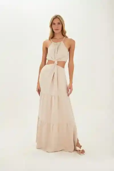 Vestido Largo Sophie Beige L Mercedes Campuzano