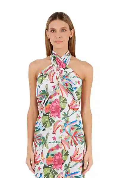 Vestido Largo Tropico Estampado Marfil M Mercedes Campuzano