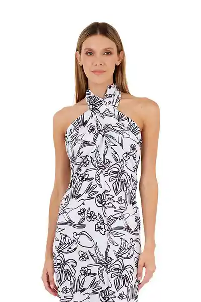 Vestido Largo Tropico Estampado Marfil M Mercedes Campuzano