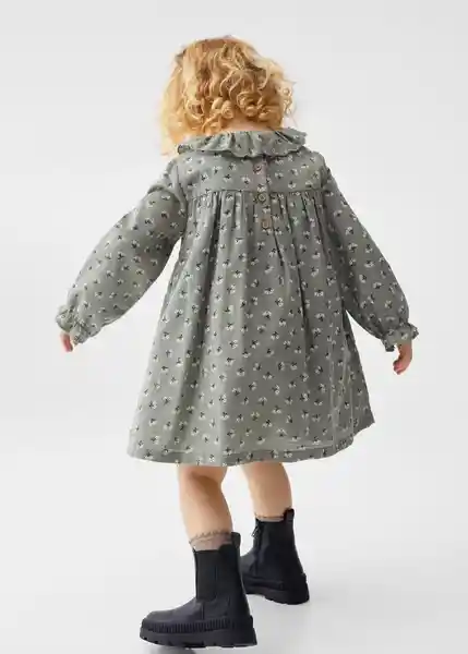 Cierre de Botones en la Parte Posterior Cuello Redondo Detalle de Volantes en el Cuello Diseño Corto Diseño Evasé Estampado Floral Fruncido Elástico en la Cintura Manga Larga Tejido 100% Algodón - 47001154_43.