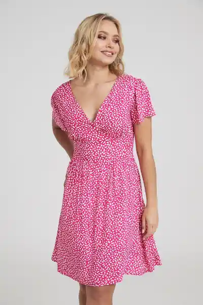 En Chalís Estampado Forrado Con Escote Cruzado Manga Corta Falda Corta Ajustada en Busto y Cintura.