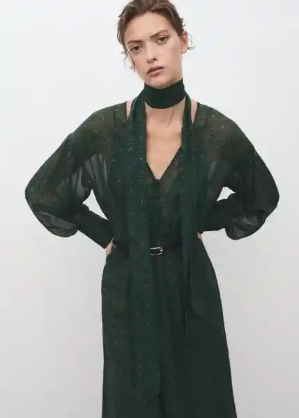 Adorno de Fular en el Cuello Cierre Delantero Con Botones Cinturón Con Cierre de Hebilla Cuello Pico Diseño Estampado Diseño Evasé Diseño Largo Forro Interior Manga Larga Con Puños Abotonados Tejido Semitransparente - 17015834_43.