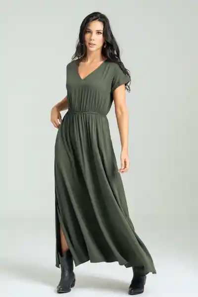 En Chalis Estampado Escote en V Manga Rodada Con Guardapolvo Elástico en Cintura Bolsillos Aberturas en Falda.