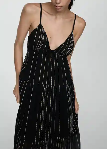 Costuras Decorativas, Diseño Evasé, Diseño Largo, Diseño Maxi, Escote Con Cierre de Lazo, Escote de Pico, la Modelo Mide 178 cm y Lleva Una S, Sin Cierre, Sin Mangas, Tejido Mezcla de Algodón, Tirantes Finos - 77010362_99.
