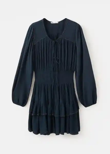 Cuello de Pico Detalle de Abalorios Detalle de Lazo en el Cuello Detalle de Volantes en el Bajo Diseño Corto Diseño Evasé Manga Larga Tejido Fluido - 27065957_52.
