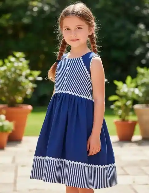 El vestido Marinero Azul para niña es la elección perfecta para cualquier ocasión casual o fiesta infantil. Su diseño sin mangas y cuello redondo proporciona comodidad y frescura, ideal para los días soleados. Confeccionado en una mezcla de lino y poliéster, este vestido es ligero y fácil de llevar, permitiendo que las más pequeñas se muevan con libertad. Su estilo colorido y divertido lo convierte en una prenda versátil que se puede combinar con diferentes accesorios. El largo corto del vestido añade un toque de alegría y dinamismo, perfecto para que las niñas luzcan encantadoras en cualquier evento. Este vestido es una opción ideal para las pequeñas que desean destacar con un look alegre y desenfadado. DISPONIBLE TALLA 4 ( recomendado para niñas de 3 a 4 años )