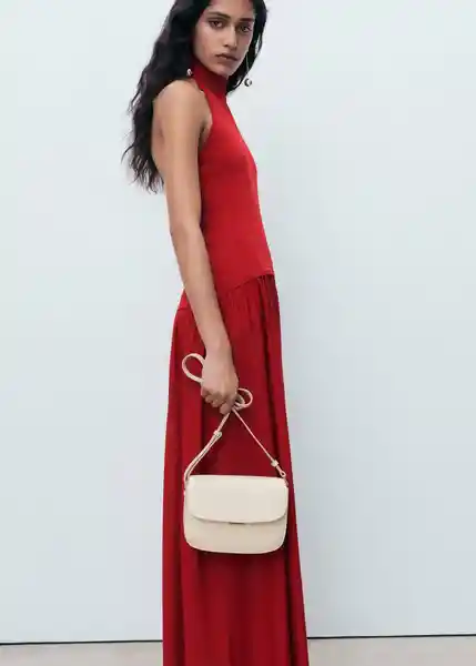 Cierre de Botones en el Cuello Cuello Halter Diseño Combinado Diseño Evasé Diseño Largo Espalda Con Escote Sin Mangas Tejido de Punto Fino - 17054098_70.
