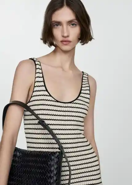 Abertura Lateral en el Bajo Cuello Redondo Diseño Largo Diseño Recto Sin Cierre Sin Mangas Tejido de Punto Tejido Mezcla de Algodón Terminación en Contraste Tirantes Anchos - 67068648_99.