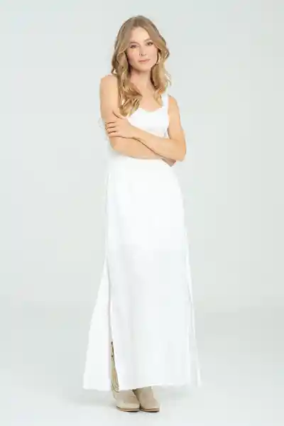 En Tafetán Bordado Fondo Entero Tiras Anchas Detalle de Resortado es Espalda Superior Corte en Frente Superior Bolsillos Abertura en Falda Forro Interno en Chalis Fondo Entero.