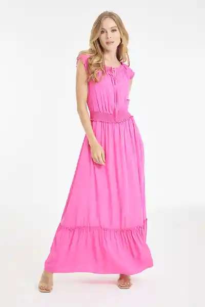 En Chalis Fondo Entero Escote Con Rouche Decorativo Manga Casco Resortado en Cintura y Mangas Bolero en Ruedo.