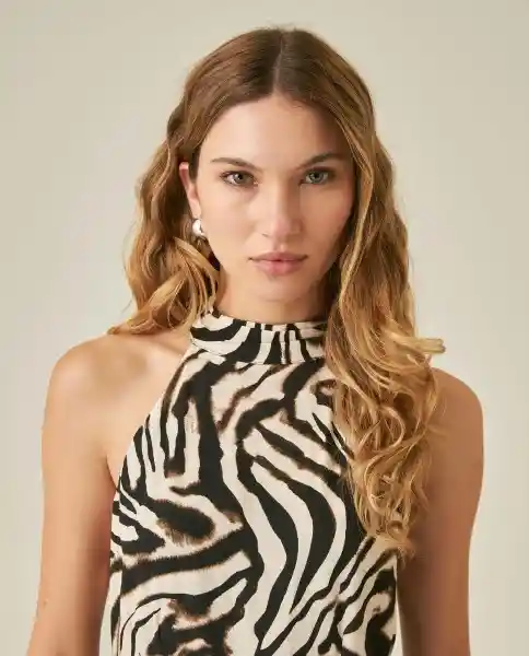 Midi Con Abertura Femenino Semi Ajustado Cuello Halter Con Botones en Viscosa 58% y Rayón 42%. Escote Cruzado. Corte en Cintura Con Detalle Recogido en Frente. Falda Línea a Con Abertura en Frente. Tela Estampada Animal Print Con Caída. Construcción Halter Con Abertura. Silueta Semi Ajustada. Ean- 771H003Cru114302 Plu- 1111133260069.