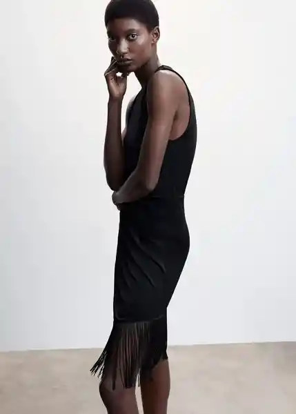 Cierre de Botón en el Cuello Colección Fiesta y Ceremonia Cuello Redondo Diseño Asimétrico Diseño Midi Diseño Recto Tejido Fluido Terminación de Flecos Tirantes Anchos - 47055877_99.