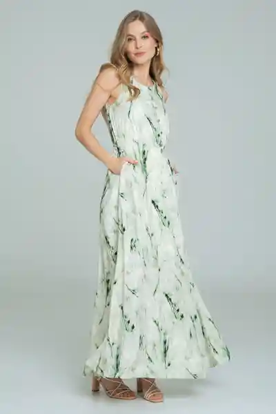 Largo en Chalis Estampado Escote Redondo Manga Sisa Perilla Con Botón Metálico Elástico de 1 cm en Cintura Bolsillos en Los Laterales de la Abertura en Frente Forrado Silueta Semi Ajustada.