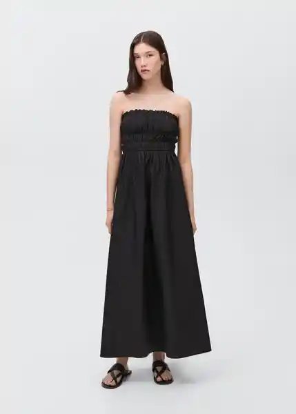 100% Algodón Cintura Fruncida Diseño Recto Palabra de Honor Panel Nido de Abeja - 87015737_99.