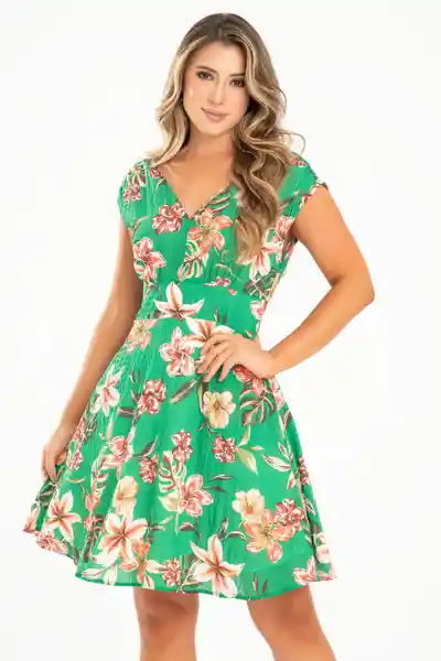 En Chifón Corrugado Escote en V Sisa Rodada Con Recogido en Hombro Ajusta en Cintura Falda Con Bolsillos en Línea a.