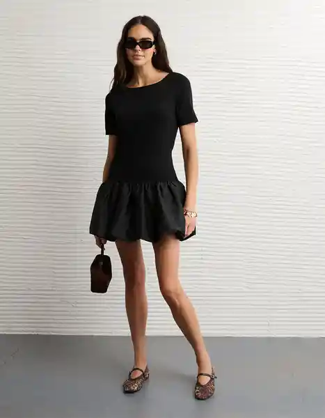 Tela Tejida Suave Cuello Alto Mangas Cortas.