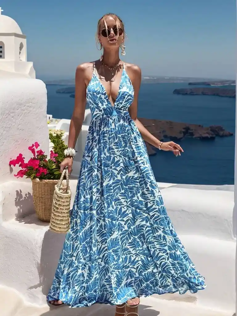 Vestido Mujer Tipo Camisola Estampado Completo Muslo Abierto TALLA M/L