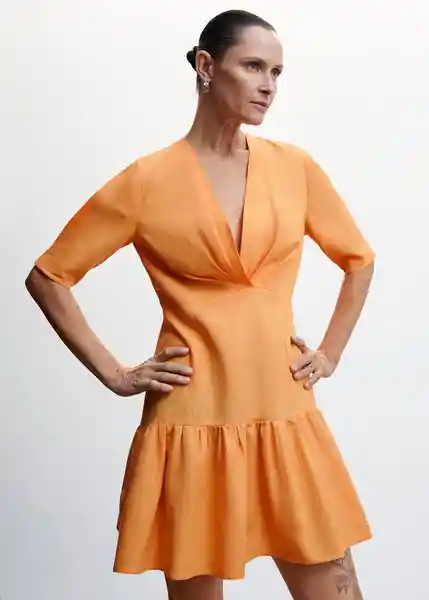Cuello de Pico Diseño Corto Diseño Entallado Manga Corta Tejido Fluido Volante en el Bajo - 47054011_23.