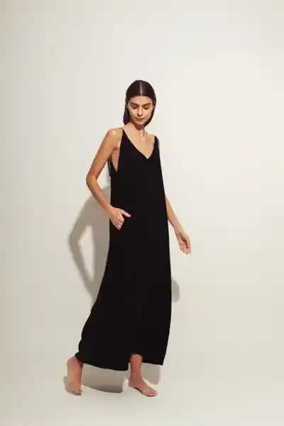 Un vestido largo, suelto y cómodo. Lo puedes usar para un día de descanso, o para una ocasión especial con un cinturón. Su composición es algodón-lino y tiene 95 cm en contorno de busto y 135 cm de largo.